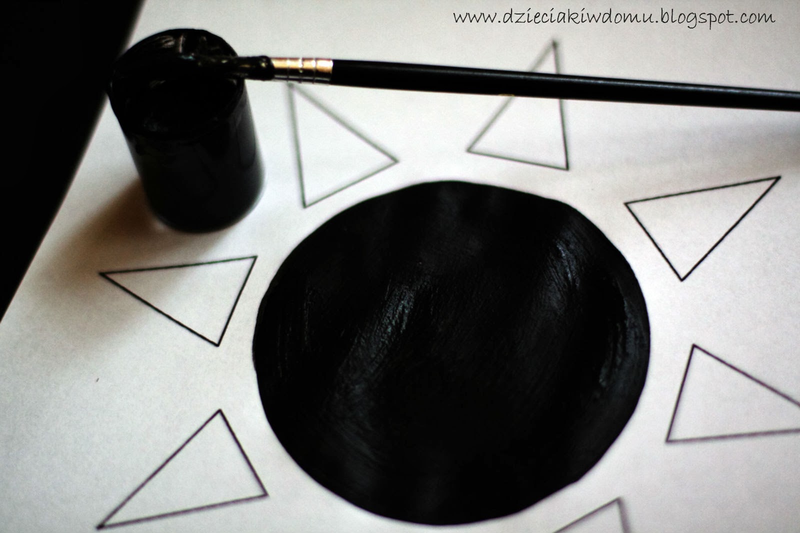 Potrzebne będą: białe kartki z bloku technicznego, czarna farba, pędzel, marker